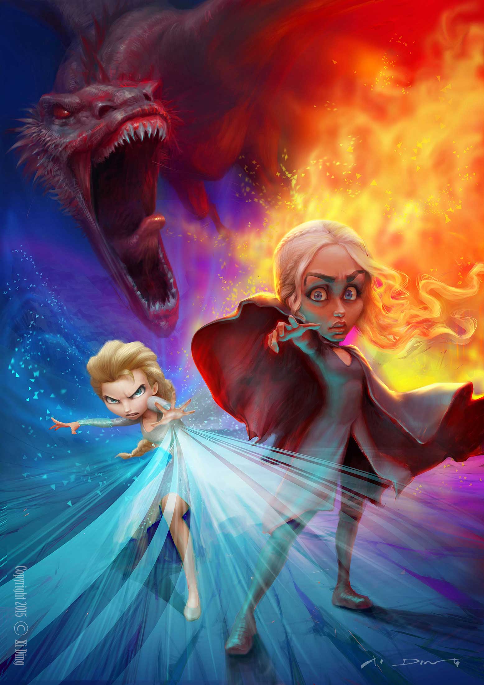 A caricature of Daenerys from „Game of Thrones“ and Elsa from „Frozen“. This piece has won the first price of „Best Digital Art“ at the EUROCATURE ’15 took place in Vienna this year.