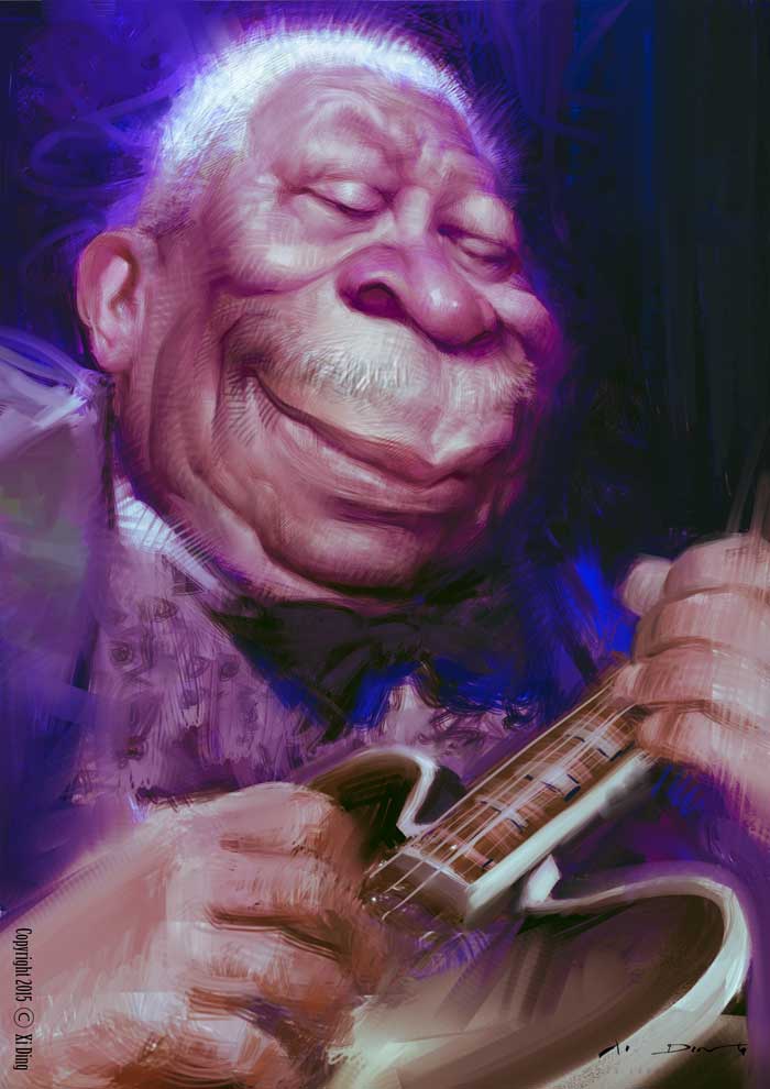 Eine Karikatur von BB King – King of Blues (1925 – 2015) Diese Karikatur hat den 2. Preis beim internationalen Wettbewerb „Caricaturama Showdown 3000“ gewonnen. Download a High Resolution Version View Larger View Larger